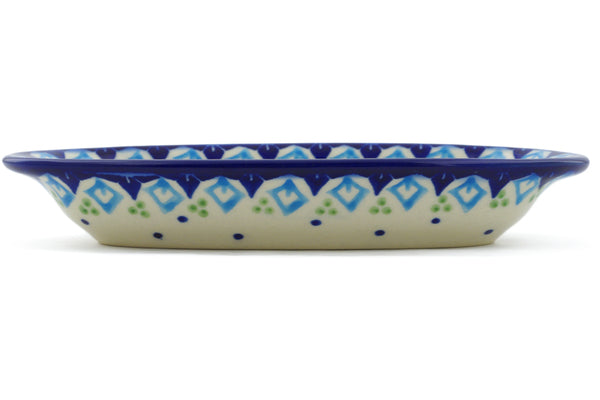 This Polish Pottery Condiment Dish is handmade and handpainted by the Ceramika Bona factory in Boleslawiec, Poland. Manufacturer item number H4063J. It is 1¼" high and measures 7¼" by 3¾". The capacity of this Condiment Dish is 5.58 oz (brimful) and it weighs 0.5 lbs. It is part of the Aster Patches Collection.