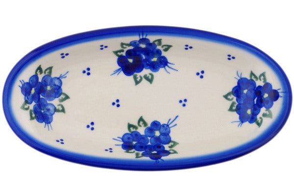 This Polish Pottery Condiment Dish is handmade and handpainted by the Ceramika Bona factory in Boleslawiec, Poland. Manufacturer item number H9619Q. It is 1¼" high and measures 7¼" by 3¾". The capacity of this Condiment Dish is 5.58 oz (brimful) and it weighs 0.5 lbs. It is part of the Poppy Triad Collection.