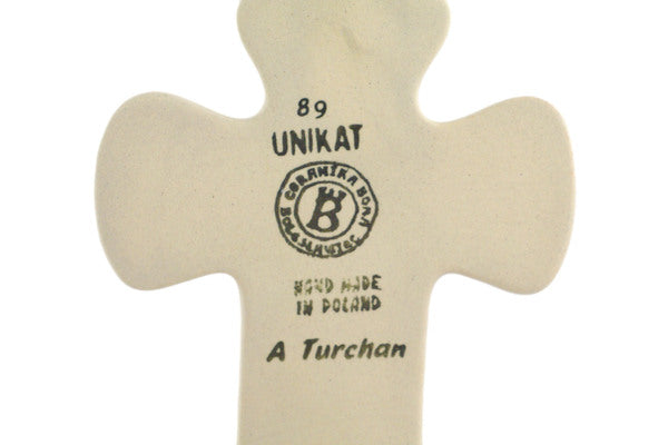 This is a Polish pottery Unikat (Signature) Cross, which means that it has been hand painted with both sponges and brushes and it is signed by the artist who painted it. Unikat pieces are the most intricate works of art. Larger Unikat items take hours of very careful work to finish.