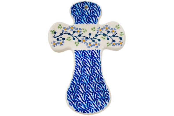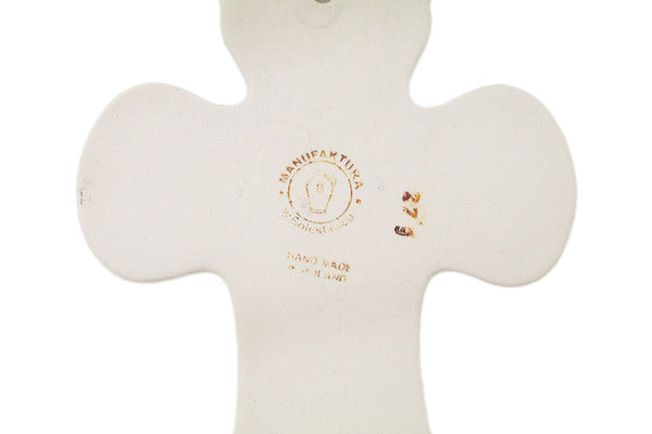 This Polish Pottery Cross is handmade and handpainted by the Manufaktura factory in Boleslawiec, Poland. Manufacturer item number H8249P. It is ¼" high and measures 7¼" by 5". The weight of this Cross is 0.4 lbs. It is part of the Branches Of Delicacy Collection.