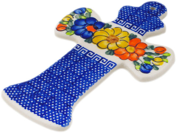 This Polish Pottery Cross is handmade and handpainted by the Ceramika Bona factory in Boleslawiec, Poland. Manufacturer item number H4440Q. It is ¼" high and measures 7½" by 4½". The weight of this Cross is 0.4 lbs. It is part of the Fall Garden Collection.