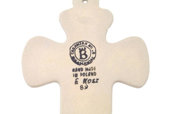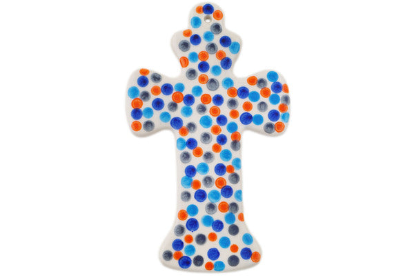 This Polish Pottery Cross is handmade and handpainted by the Ceramika Bona factory in Boleslawiec, Poland. Manufacturer item number H2079R. It is ¼" high and measures 7½" by 4½". The weight of this Cross is 0.4 lbs. It is part of the Polka Dot Frenzy Collection.
