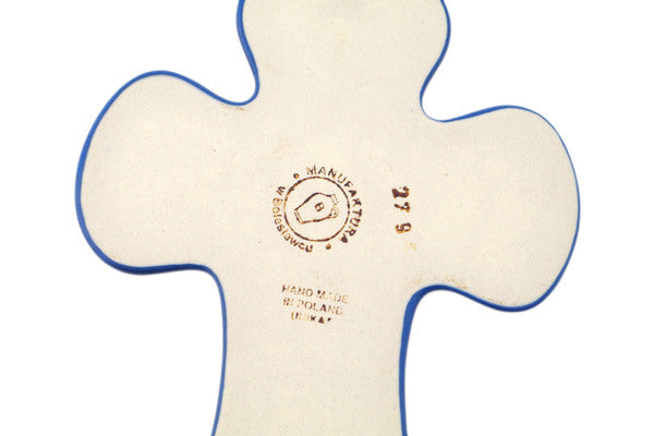 This Polish Pottery Cross is handmade and handpainted by the Manufaktura factory in Boleslawiec, Poland. Manufacturer item number H8506P. It is ¼" high and measures 7¼" by 5". The weight of this Cross is 0.4 lbs. It is part of the Rainbow Delight Collection.