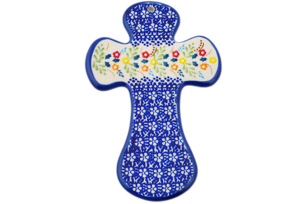 This is a Polish pottery Unikat (Signature) Cross, which means that it has been hand painted with both sponges and brushes and it is signed by the artist who painted it. Unikat pieces are the most intricate works of art. Larger Unikat items take hours of very careful work to finish.