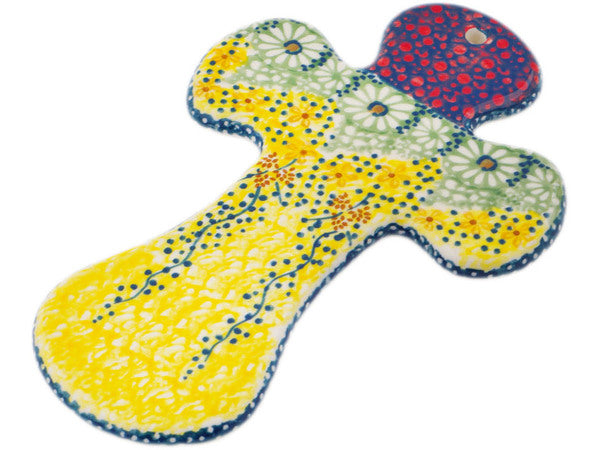 This Polish Pottery Cross is handmade and handpainted by the Manufaktura factory in Boleslawiec, Poland. Manufacturer item number H7549P. It is ¼" high and measures 7¼" by 5". The weight of this Cross is 0.4 lbs. It is part of the Sunshine Grotto Collection.