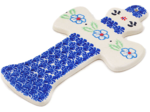 This Polish Pottery Cross is handmade and handpainted by the Ceramika Bona factory in Boleslawiec, Poland. Manufacturer item number H2161R. It is ¼" high and measures 7½" by 4½". The weight of this Cross is 0.4 lbs. It is part of the Sweet Day Collection.