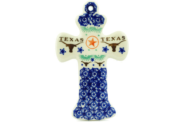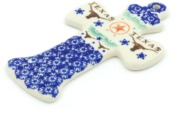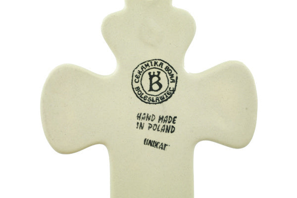 This Polish Pottery Cross is handmade and handpainted by the Ceramika Bona factory in Boleslawiec, Poland. Manufacturer item number H8272H. It is ¼" high and measures 7½" by 4½". The weight of this Cross is 0.4 lbs. It is part of the Texas State Collection.