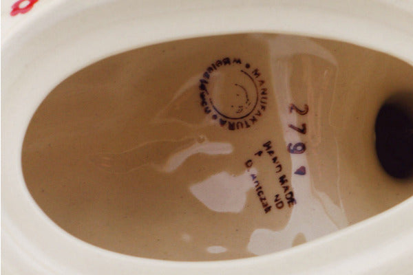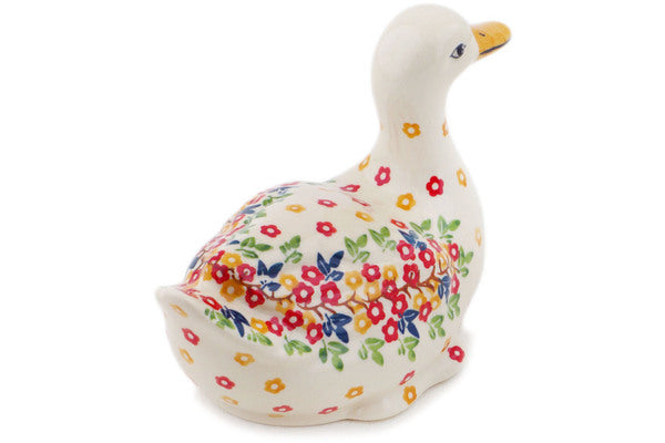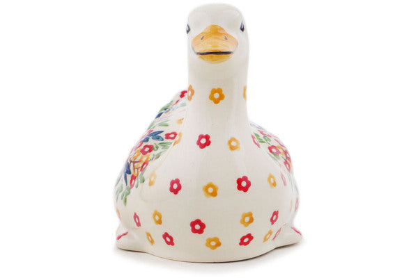 This Polish Pottery Duck Figurine is handmade and handpainted by the Manufaktura factory in Boleslawiec, Poland. Manufacturer item number H8314P. It is 4¾" high and measures 7¼" by 3¾". The weight of this Duck Figurine is 0.9 lbs. It is part of the Tropical Bloomscape Collection.