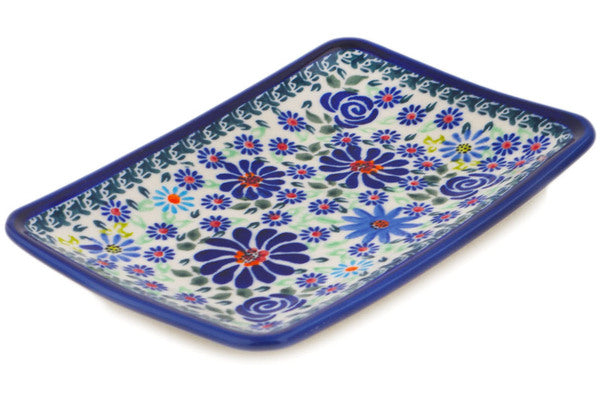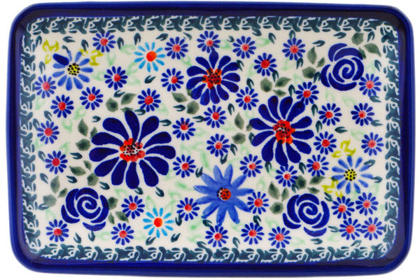 This Polish Pottery Flat Plate is handmade and handpainted by the Zaklady Ceramiczne factory in Boleslawiec, Poland. Manufacturer item number H0839N. It is ¾" high and measures 7¼" by 4¾". The weight of this Flat Plate is 0.7 lbs. It is part of the Blue Summer Garden Collection.