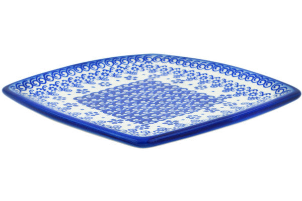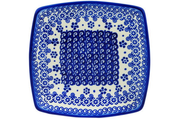 This Polish Pottery Flat Square Platter is handmade and handpainted by the Ceramika AC factory in Boleslawiec, Poland. Manufacturer item number H4756N. It is ¾" high and measures 7¼" by 7¼". The weight of this Flat Square Platter is 1.1 lbs. It is part of the Cobalt Wonder Collection.