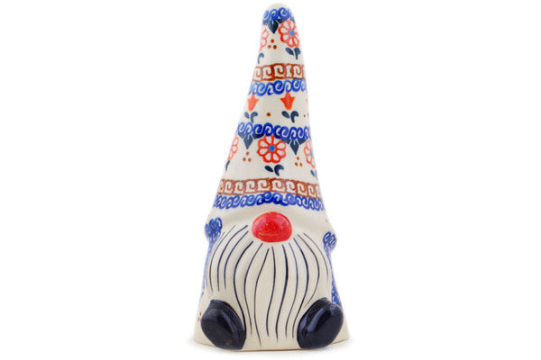 This Polish Pottery Gnome Figurine is handmade and handpainted by the Ceramika Bona factory in Boleslawiec, Poland. Manufacturer item number H9971O. It is 7¼" high and measures 3¼" by 2¾". The weight of this Gnome Figurine is 0.7 lbs. It is part of the Amarillo Collection.