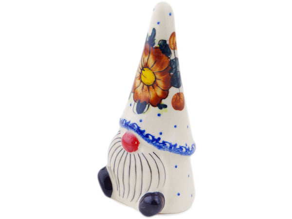 This Polish Pottery Gnome Figurine is handmade and handpainted by the Ceramika Bona factory in Boleslawiec, Poland. Manufacturer item number H1949Q. It is 7¼" high and measures 3¼" by 2¾". The weight of this Gnome Figurine is 0.7 lbs. It is part of the Autumn Pansies Collection.