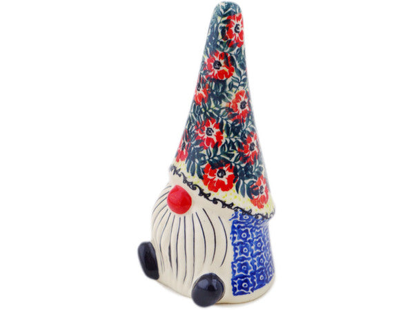 This Polish Pottery Gnome Figurine is handmade and handpainted by the Ceramika Bona factory in Boleslawiec, Poland. Manufacturer item number H3776P. It is 7¼" high and measures 3¼" by 2¾". The weight of this Gnome Figurine is 0.7 lbs. It is part of the Red Wreath Collection.