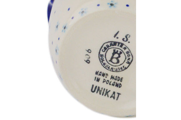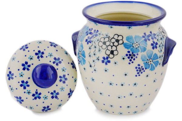 This Polish Pottery Jar with Lid and Handles is handmade and handpainted by the Ceramika Bona factory in Boleslawiec, Poland. Manufacturer item number H4992R. It is 7¼" high and measures 6" by 5¼". The capacity of this Jar with Lid and Handles is 36.62 oz (brimful) and it weighs 2.3 lbs. It is part of the Pansy Dawn Collection.