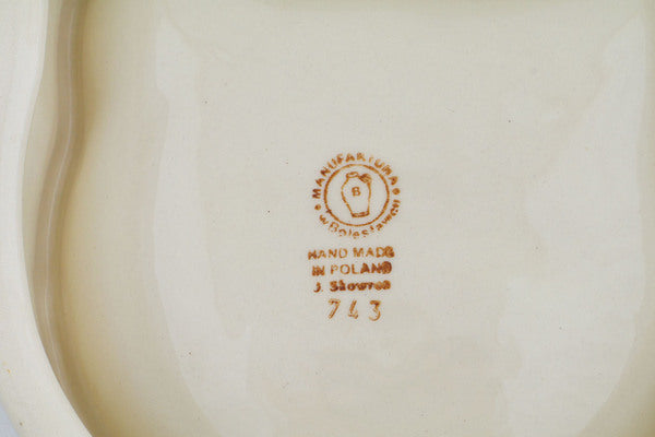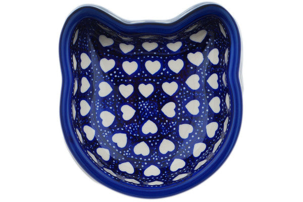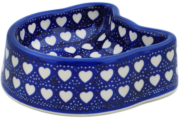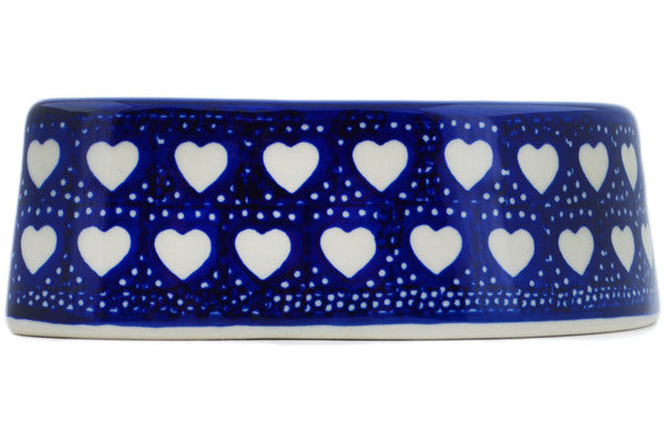 This Polish Pottery Pet Bowl is handmade and handpainted by the Manufaktura factory in Boleslawiec, Poland. Manufacturer item number H5184O. It is 2¼" high and measures 6¾" by 6¼". The capacity of this Pet Bowl is 14.40 oz (brimful) and it weighs 1.5 lbs. It is part of the Heart's Full Of Love Collection.