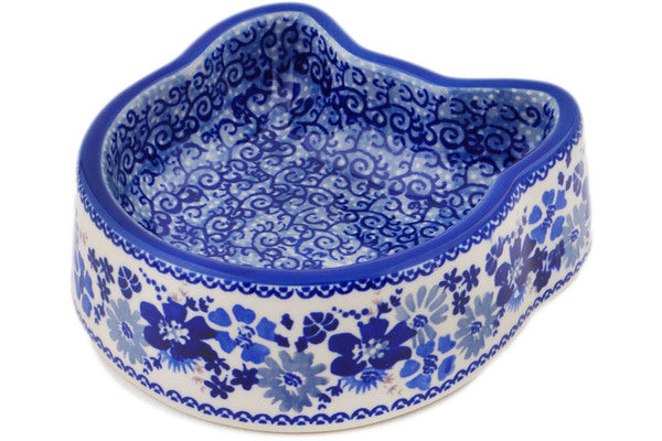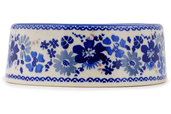 This Polish Pottery Pet Bowl is handmade and handpainted by the Manufaktura factory in Boleslawiec, Poland. Manufacturer item number H8364P. It is 2¼" high and measures 6¾" by 6¼". The capacity of this Pet Bowl is 14.40 oz (brimful) and it weighs 1.5 lbs. It is part of the Periwinkle Sweetness Collection.
