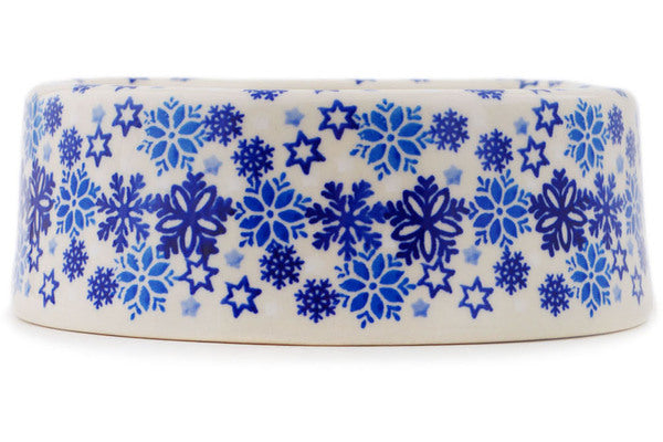 This Polish Pottery Pet Bowl is handmade and handpainted by the Manufaktura factory in Boleslawiec, Poland. Manufacturer item number H7139P. It is 2¼" high and measures 6¾" by 6¼". The capacity of this Pet Bowl is 14.40 oz (brimful) and it weighs 1.5 lbs. It is part of the Snowdrift Collection.