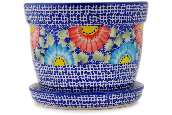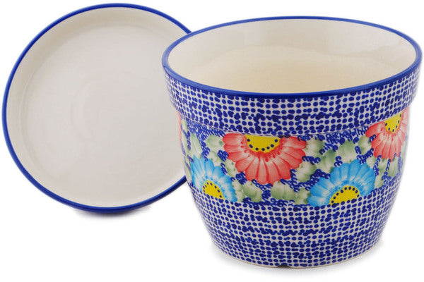 This Polish Pottery Planter is handmade and handpainted by the Manufaktura factory in Boleslawiec, Poland. Manufacturer item number H8345Q. It is 6" high and measures 7¼" by 7¼". The weight of this Planter is 3.5 lbs. It is part of the Spotted Garden Collection.