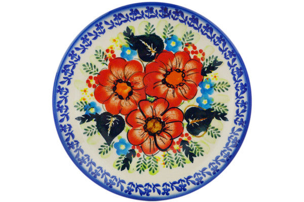 This Polish Pottery Plate is handmade and handpainted by the Ceramika Bona factory in Boleslawiec, Poland. Manufacturer item number H6682R. It is ¾" high and measures 6¾" by 6¾". The capacity of this Plate is 5.14 oz (brimful) and it weighs 0.7 lbs. It is part of the Bold Red Poppies Collection.