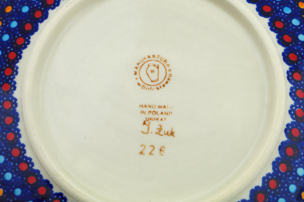 This is a Polish pottery Unikat (Signature) Plate, which means that it has been hand painted with both sponges and brushes and it is signed by the artist who painted it. Unikat pieces are the most intricate works of art. Larger Unikat items take hours of very careful work to finish.