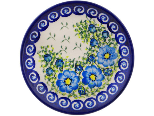 This Polish Pottery Plate is handmade and handpainted by the Ceramika Bona factory in Boleslawiec, Poland. Manufacturer item number H2049R. It is ¾" high and measures 6¾" by 6¾". The capacity of this Plate is 5.14 oz (brimful) and it weighs 0.7 lbs. It is part of the Gorgeous Morning Glory Collection.