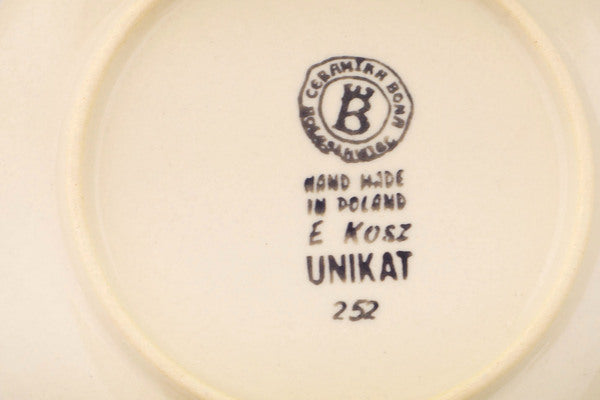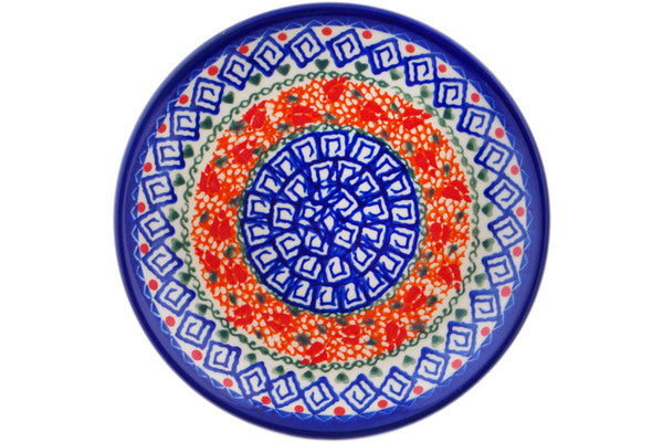 This Polish Pottery Plate is handmade and handpainted by the Ceramika Bona factory in Boleslawiec, Poland. Manufacturer item number H9662Q. It is ¾" high and measures 6¾" by 6¾". The capacity of this Plate is 5.14 oz (brimful) and it weighs 0.7 lbs. It is part of the Grecian Fire Tulips Collection.