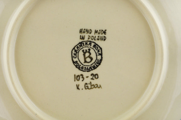 This Polish Pottery Plate is handmade and handpainted by the Ceramika Bona factory in Boleslawiec, Poland. Manufacturer item number H0505C. It is 1" high and measures 7½" by 7½". The weight of this Plate is 0.8 lbs. It is part of the Mosquito Collection.