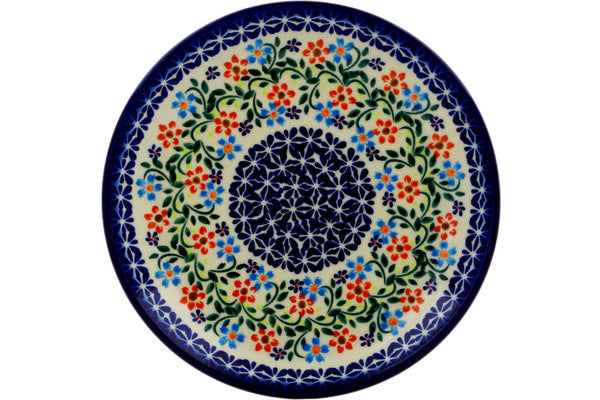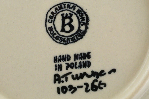 This Polish Pottery Plate is handmade and handpainted by the Ceramika Bona factory in Boleslawiec, Poland. Manufacturer item number H7020J. It is 1" high and measures 7½" by 7½". The weight of this Plate is 0.8 lbs. It is part of the Neon Wreath Collection.
