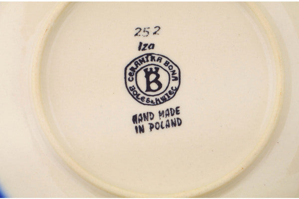 This Polish Pottery Plate is handmade and handpainted by the Ceramika Bona factory in Boleslawiec, Poland. Manufacturer item number H9555Q. It is ¾" high and measures 6¾" by 6¾". The capacity of this Plate is 5.14 oz (brimful) and it weighs 0.7 lbs. It is part of the Poppy Triad Collection.