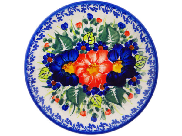This Polish Pottery Plate is handmade and handpainted by the Ceramika Bona factory in Boleslawiec, Poland. Manufacturer item number H7130Q. It is ¾" high and measures 6¾" by 6¾". The capacity of this Plate is 5.14 oz (brimful) and it weighs 0.7 lbs. It is part of the Poppy Trio Collection.