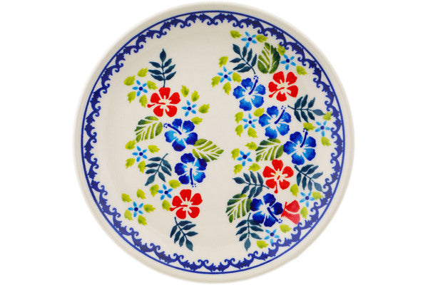 This Polish Pottery Plate is handmade and handpainted by the Zaklady Ceramiczne factory in Boleslawiec, Poland. Manufacturer item number H7243N. It is ¾" high and measures 7½" by 7½". The weight of this Plate is 1.0 lbs. It is part of the Wildflower Dreamscape Collection.