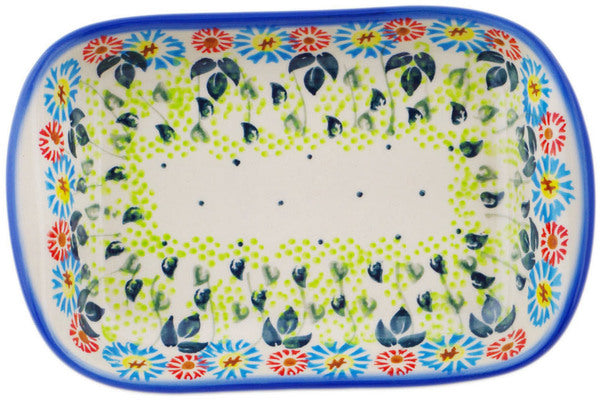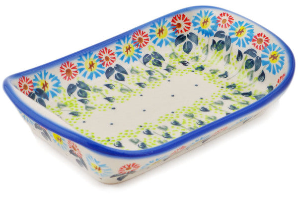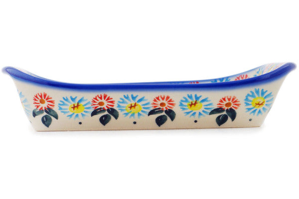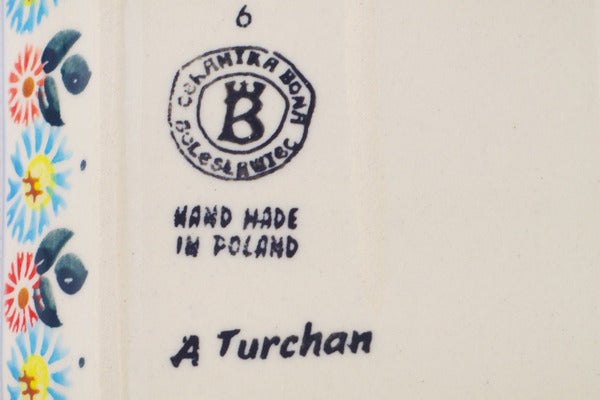 This Polish Pottery Platter with Handles is handmade and handpainted by the Ceramika Bona factory in Boleslawiec, Poland. Manufacturer item number H9826Q. It is 1½" high and measures 7½" by 5". The weight of this Platter with Handles is 1.0 lbs. It is part of the Long-stemmed Beauties Collection.