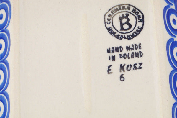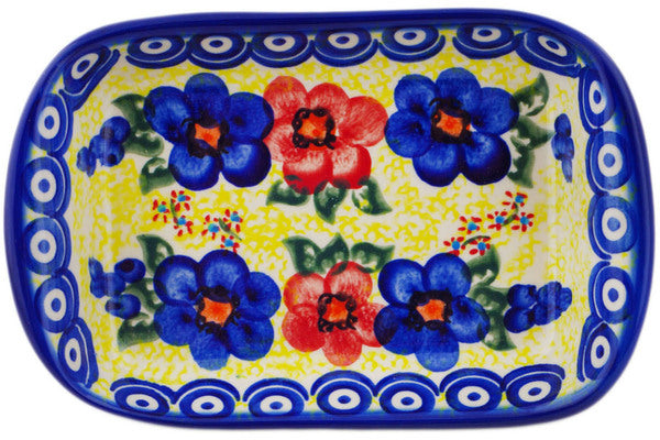 This Polish Pottery Platter with Handles is handmade and handpainted by the Ceramika Bona factory in Boleslawiec, Poland. Manufacturer item number H7142Q. It is 1½" high and measures 7½" by 5". The weight of this Platter with Handles is 1.0 lbs. It is part of the Neon Poppies Collection.