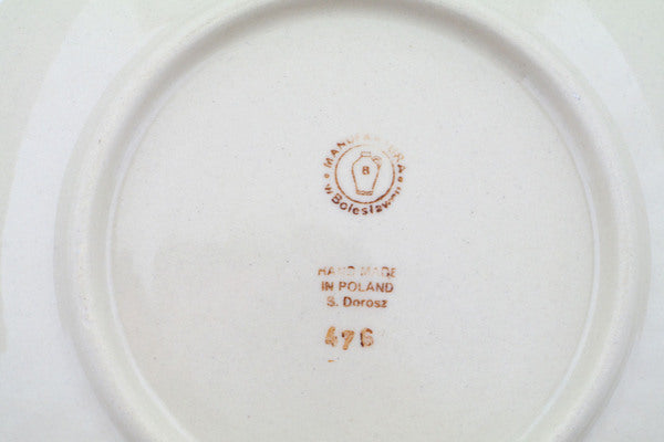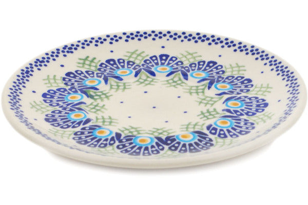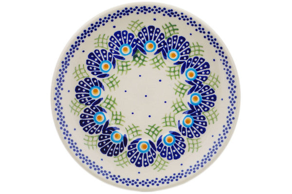 This Polish Pottery Saucer is handmade and handpainted by the Manufaktura factory in Boleslawiec, Poland. Manufacturer item number H2449P. It is 1" high and measures 7¼" by 7¼". The weight of this Saucer is 0.8 lbs. It is part of the Tail Feathers Collection.