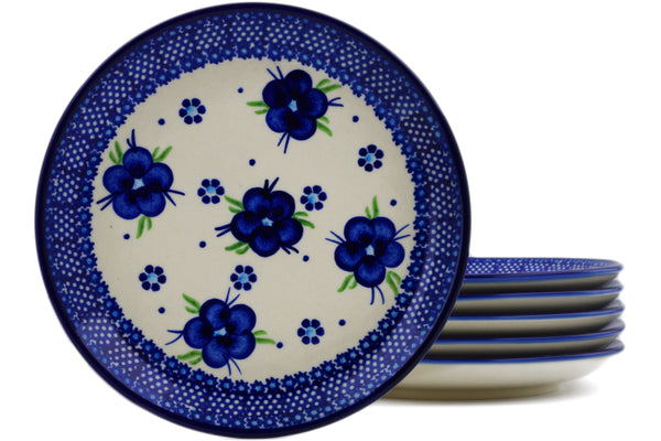 This Polish Pottery Set of 6 Plates is handmade and handpainted by the Ceramika Bona factory in Boleslawiec, Poland. Manufacturer item number H9982J. It is 1" high and measures 7½" by 7½". The weight of this Set of 6 Plates is 0.8 lbs. It is part of the Bleu-Belle Fleur Collection.
