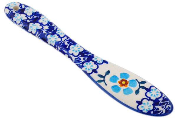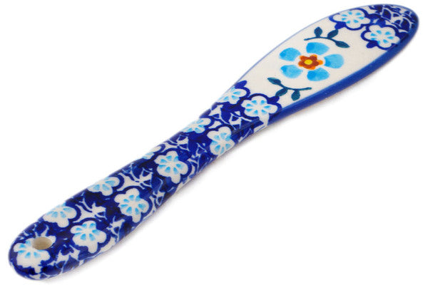 This Polish Pottery Spreading Knife is handmade and handpainted by the Manufaktura factory in Boleslawiec, Poland. Manufacturer item number H8217P. It is 1½" high and measures 7" by ¼". The weight of this Spreading Knife is 4.8 lbs. It is part of the Blue Chain Collection.