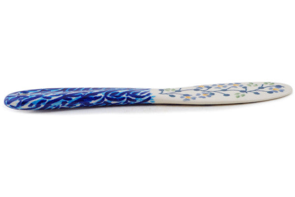 This Polish Pottery Spreading Knife is handmade and handpainted by the Manufaktura factory in Boleslawiec, Poland. Manufacturer item number H8276P. It is 1½" high and measures 7" by ¼". The weight of this Spreading Knife is 4.8 lbs. It is part of the Branches Of Delicacy Collection.