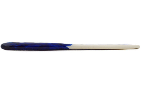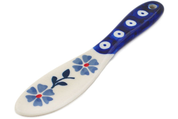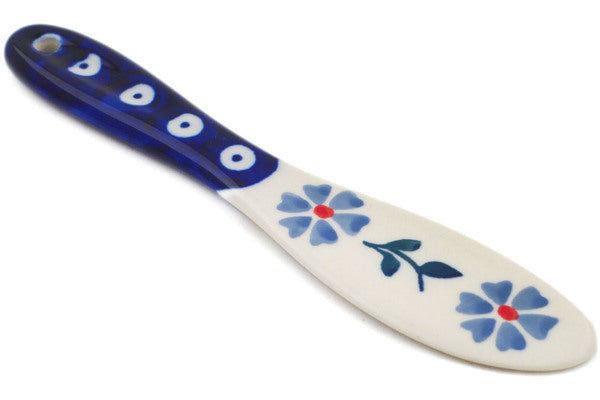 This Polish Pottery Spreading Knife is handmade and handpainted by the Manufaktura factory in Boleslawiec, Poland. Manufacturer item number H7269O. It is 1½" high and measures 7" by ¼". The weight of this Spreading Knife is 4.8 lbs. It is part of the Peacock Forget-Me-Not Collection.
