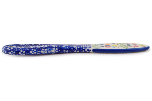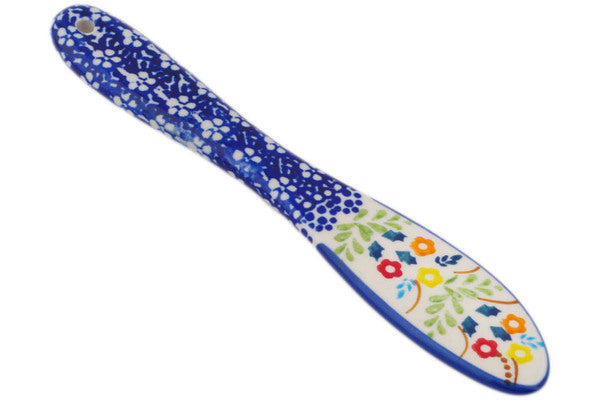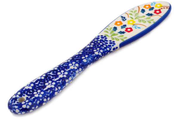 This Polish Pottery Spreading Knife is handmade and handpainted by the Manufaktura factory in Boleslawiec, Poland. Manufacturer item number H8532P. It is 1½" high and measures 7" by ¼". The weight of this Spreading Knife is 4.8 lbs. It is part of the Rainbow Delight Collection.