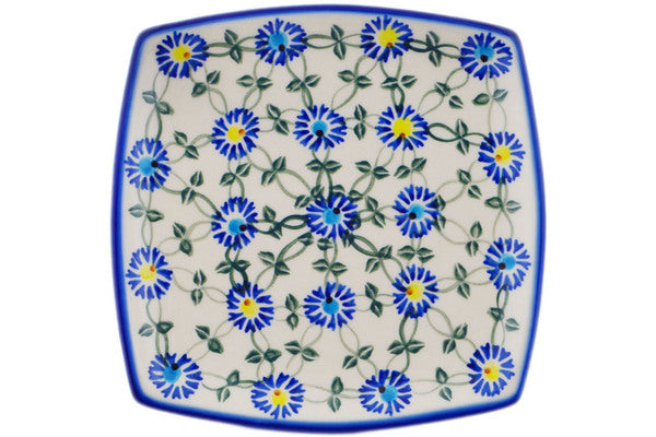 This Polish Pottery Square Plate is handmade and handpainted by the Ceramika Bona factory in Boleslawiec, Poland. Manufacturer item number H2224R. It is ½" high and measures 7¼" by 7¼". The weight of this Square Plate is 1.0 lbs. It is part of the Blue Thistle Beauty Collection.