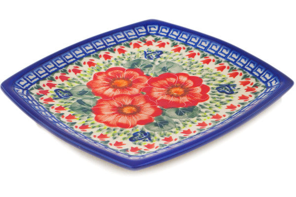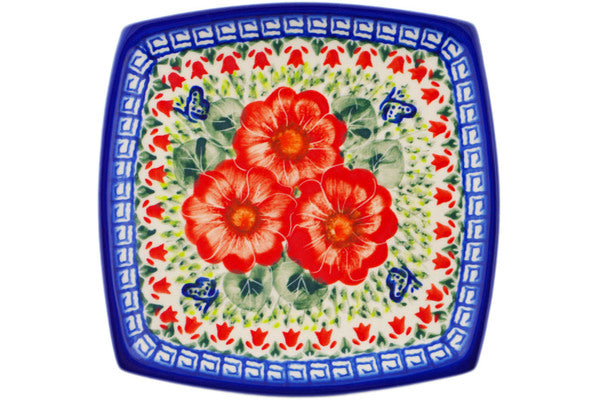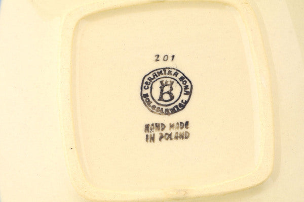 This Polish Pottery Square Plate is handmade and handpainted by the Ceramika Bona factory in Boleslawiec, Poland. Manufacturer item number H3101Q. It is ½" high and measures 7¼" by 7¼". The weight of this Square Plate is 1.0 lbs. It is part of the Happiness Collection.