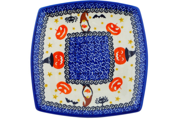 This Polish Pottery Square Plate is handmade and handpainted by the Ceramika Nina factory in Boleslawiec, Poland. Manufacturer item number H1524P. It is ½" high and measures 7¼" by 7¼". The weight of this Square Plate is 1.0 lbs. It is part of the Harvest Haunt Collection.