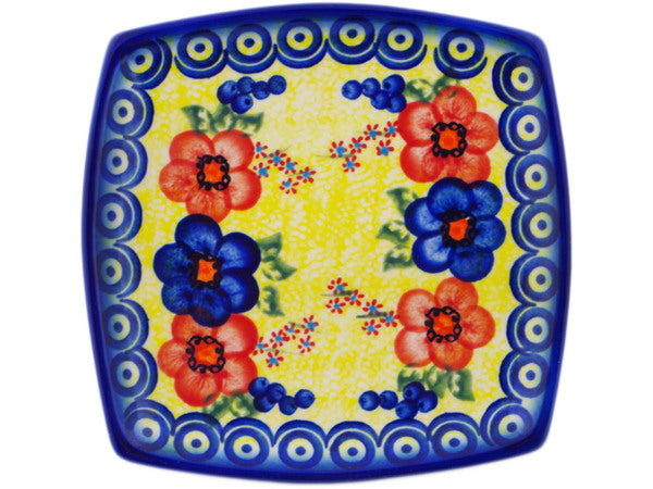 This Polish Pottery Square Plate is handmade and handpainted by the Ceramika Bona factory in Boleslawiec, Poland. Manufacturer item number H7093Q. It is ½" high and measures 7¼" by 7¼". The weight of this Square Plate is 1.0 lbs. It is part of the Neon Poppies Collection.
