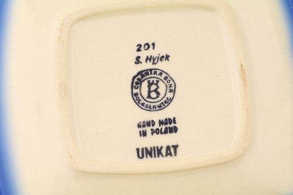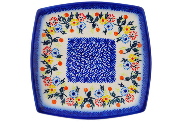 This Polish Pottery Square Plate is handmade and handpainted by the Ceramika Bona factory in Boleslawiec, Poland. Manufacturer item number H1927R. It is ½" high and measures 7¼" by 7¼". The weight of this Square Plate is 1.0 lbs. It is part of the Pastel Spring Wreath Collection.