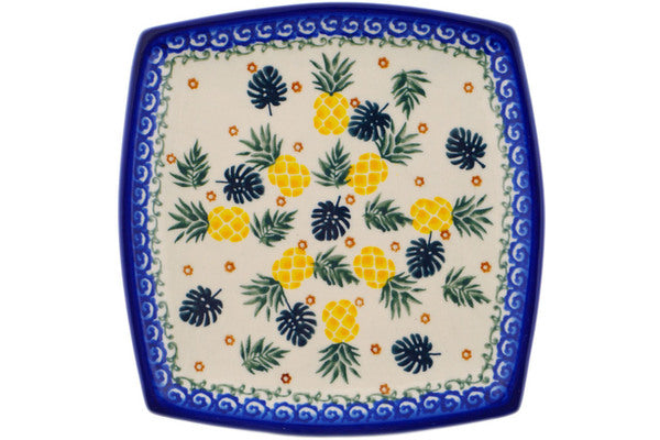This Polish Pottery Square Plate is handmade and handpainted by the Ceramika Bona factory in Boleslawiec, Poland. Manufacturer item number H1801P. It is ½" high and measures 7¼" by 7¼". The weight of this Square Plate is 1.0 lbs. It is part of the Pineapple Parade Collection.