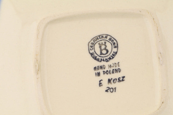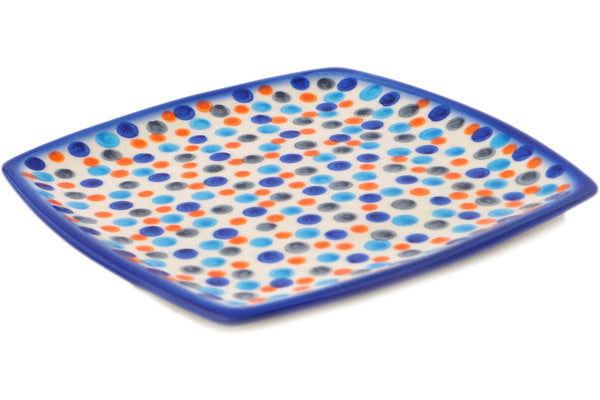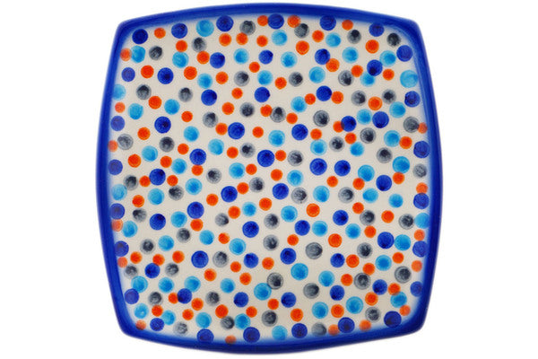 This Polish Pottery Square Plate is handmade and handpainted by the Ceramika Bona factory in Boleslawiec, Poland. Manufacturer item number H9951Q. It is ½" high and measures 7¼" by 7¼". The weight of this Square Plate is 1.0 lbs. It is part of the Polka Dot Frenzy Collection.