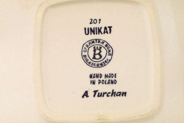 This is a Polish pottery Unikat (Signature) Square Plate, which means that it has been hand painted with both sponges and brushes and it is signed by the artist who painted it. Unikat pieces are the most intricate works of art. Larger Unikat items take hours of very careful work to finish.