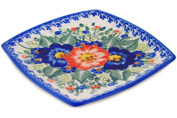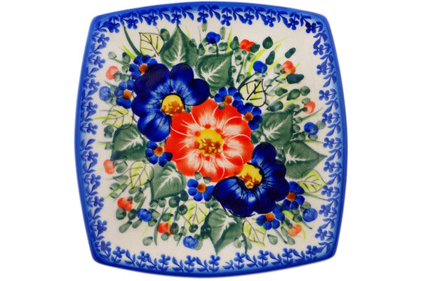 This Polish Pottery Square Plate is handmade and handpainted by the Ceramika Bona factory in Boleslawiec, Poland. Manufacturer item number H7146Q. It is ½" high and measures 7¼" by 7¼". The weight of this Square Plate is 1.0 lbs. It is part of the Poppy Trio Collection.