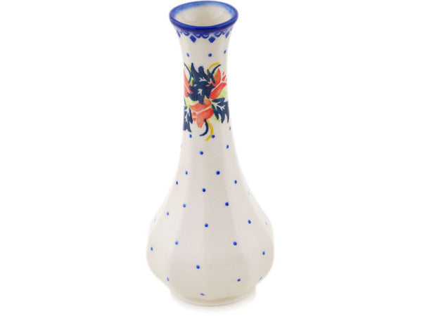 This Polish Pottery Vase is handmade and handpainted by the Ceramika Bona factory in Boleslawiec, Poland. Manufacturer item number H9554Q. It is 7½" high and measures 3¼" by 3¼". The capacity of this Vase is 8.86 oz (brimful) and it weighs 0.5 lbs. It is part of the California Poppies Collection.