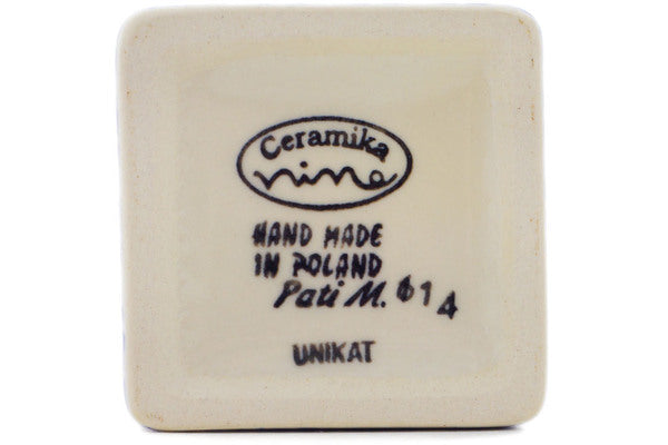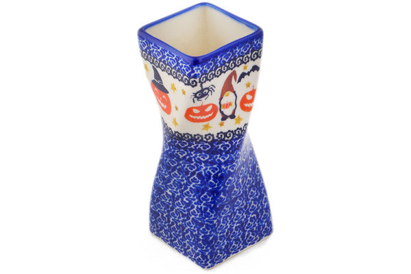 This Polish Pottery Vase is handmade and handpainted by the Ceramika Nina factory in Boleslawiec, Poland. Manufacturer item number H2831P. It is 6¾" high and measures 2½" by 2½". The capacity of this Vase is 15.82 oz (brimful) and it weighs 0.8 lbs. It is part of the Harvest Haunt Collection.